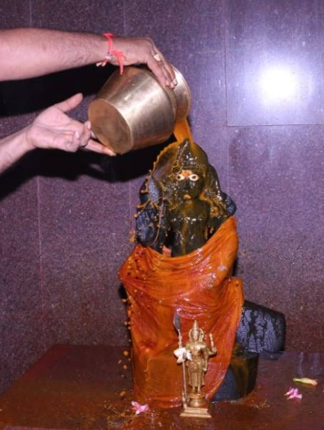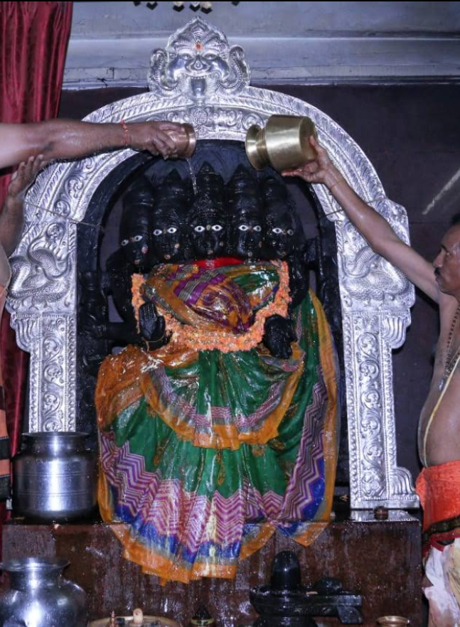 Gayatri Devi Abhishekham is a holy ritual where the idol of Goddess Gayatri is bathed with sacred items like milk, honey, and water while chanting Vedic mantras. It is performed to purify the devotee's mind and soul and to seek the Goddess’s blessings for wisdom, protection, and prosperity. This ritual is often done on Fridays or auspicious days like Pournima. Participating in Abhishekham brings peace, clarity, and spiritual upliftment.